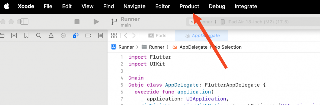 1、使用 xcode 打卡 flutter/ios 目录下的 .xcworkspace 目录