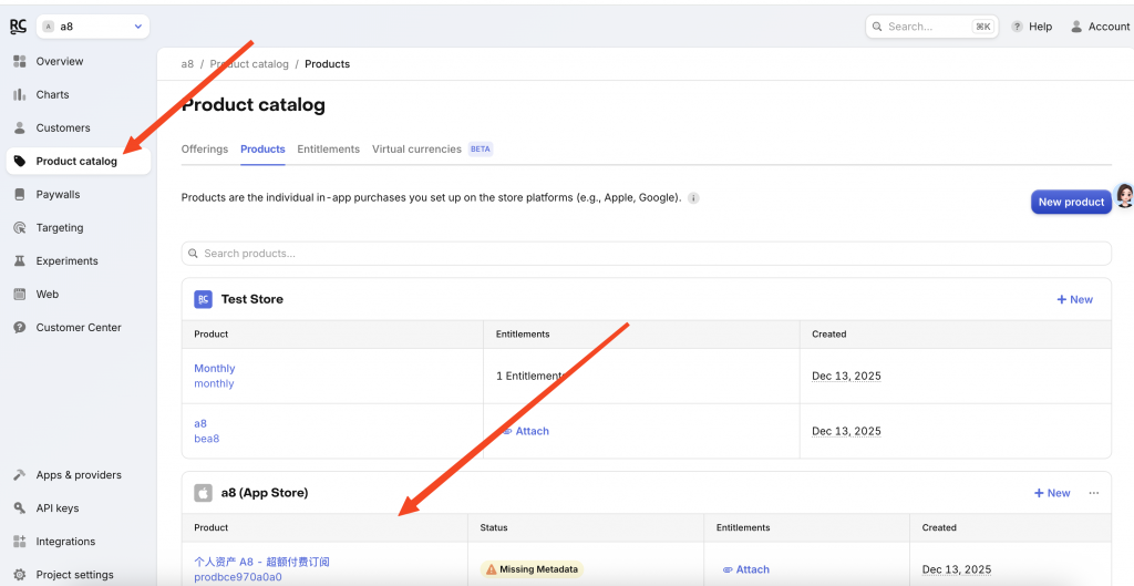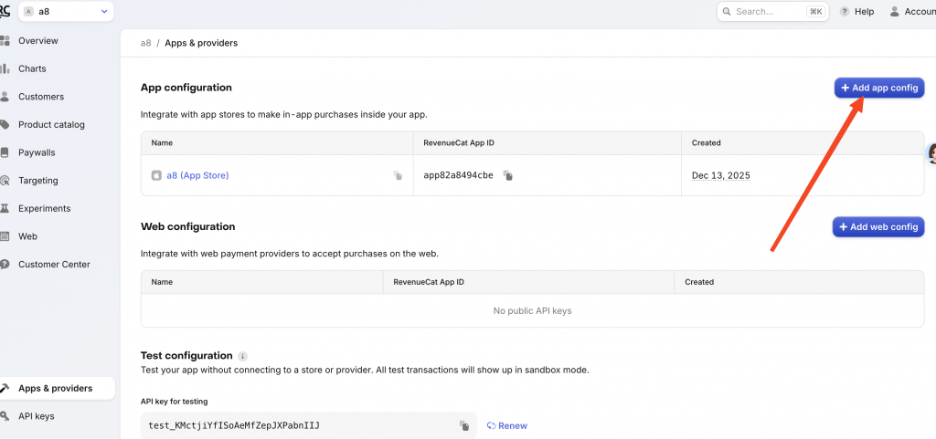 4、revenuecat 配置 app 配置完成之后,需要新建 app 购买配置。